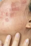 Known by its redness on the cheeks, forehead, nose, and chin, rosacea affects the central face and eyes. Small bumps or pustules may also form around the affected areas, sometimes accompanied by engorged blood vessels under the skin.